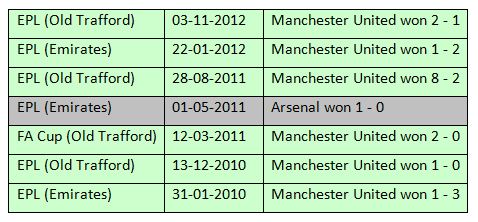Arsenal And Man U Head To Head